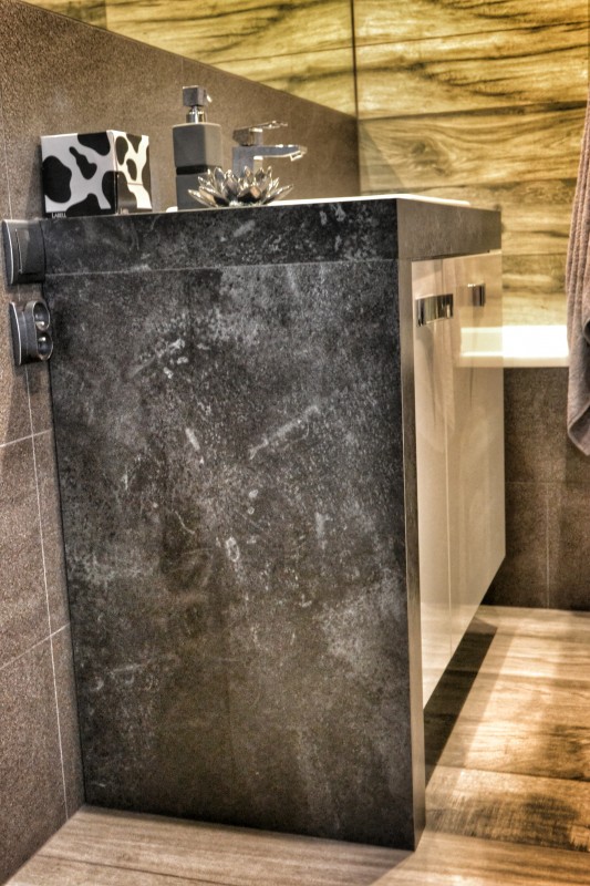 łazienka też musi mieć mebel , blat kronospan , fronty biały wysoki połysk